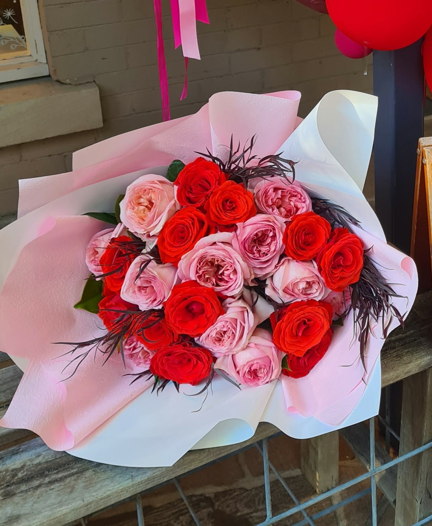 Premium mix of red and romantic pink roses in our signature gift wrap.